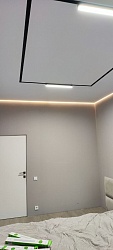 В квартире нужна была парящая конструкция с контурными потолками. «Седьмое небо» сделало все под ключ: от замера до установки. Учли особенности натяжного потолка, добавили подсветку по периметру. Комната преобразилась, световой потолок создает уют. Не жалеем о выборе!