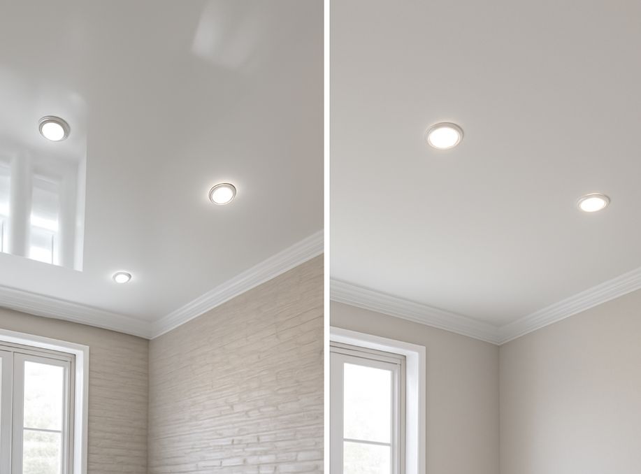 - Ремонтопригодность — дефекты часто маскируют светильником или диффузором.