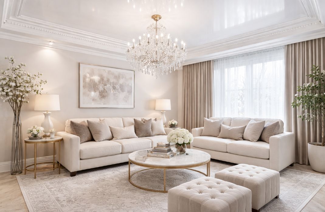 Потолочный плинтус закрывает стык стены и натяжного потолка, завершает интерьер.